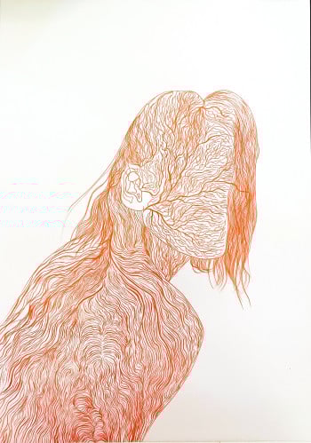 Laura Partin is a visual artist exploring figurative drawing techniques such as pen on paper, watercolor and ink, as well as performance, installation or video art. Born in Iasi, Romania in 1986, she studied fine arts and art theory, at the George Enescu University. Between 2012 and 2014, she was a fellow in Fine Arts at the Romanian Cultural Institute in Venice. In 2021, she obtained a PhD in Fine Arts at the Paris 8 University. Her recent series Mar Adentro deepens her engagement with ecological concerns. Through delicate watercolor and ink drawings, she evokes the disappearance of aquatic biodiversity and the shifting boundaries between myth and reality.