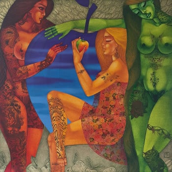 ​With over 50 years of creative mastery, Stefan creates art that serves as a vibrant celebration of life. In his figurative compositions and surreal narratives, mythology seamlessly intertwines with conceptual thought. The artist employs a unique mixed-media technique, harmonizing oil and acrylic paints with structural pastes, collage, and gold leaf. These signature relief effects and intense color contrasts amplify the visceral impact of each canvas. His work acts as a sensory bridge to the world's beauty, where decades of experience and profound craftsmanship reveal the magic within our reality.
