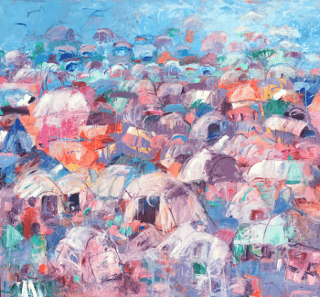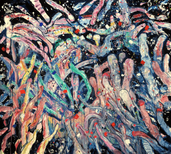 Linsteadt's paintings represent the process of making art as much as the rumination of the message. He utilizes an armature of geometry and color from which he allows the work to change and evolve. He works and re-works the surface with an emphasis on the gestural as a tribute to the human condition.