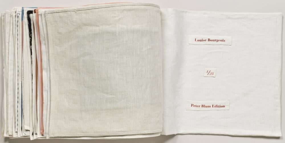 In addition to her sculptures and installations, Bourgeois produced an extensive body of prints and drawings, often characterized by their raw emotionality and graphic directness. Her fabric works, crafted from old clothing and linens, added layers of autobiography and domesticity, exploring the texture of memory and the act of sewing as a metaphor for healing and repair.