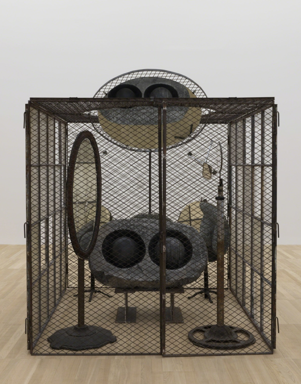 Comprised of over sixty installations, the Cells series is among her most psychologically charged works. Each cell is a microcosmic environment—enclosed, constructed from various materials including furniture, textiles, glass, and personal items—which becomes a site for staging trauma, memory, and the porous boundaries between interior and exterior worlds. Works such as Cell (Eyes and Mirrors) (1989) use repetition and reflection to allude to surveillance, self-fragmentation, and the instability of identity.
