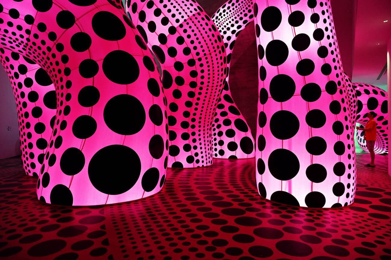 A central thread running through almost all of Kusama’s art is her fascination with infinity—a concept rooted in her hallucinatory experiences and philosophical explorations. The repetition of polka dots and nets across vast surfaces reflects her experience of the world as endless and interconnected. For Kusama, dots symbolize the sun, the moon, the earth, and the building blocks of life. She once wrote, “A polka dot has the form of the sun, which is a symbol of the energy of the whole world and our living life, and also the form of the moon, which is calm.”
