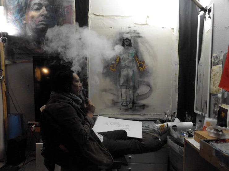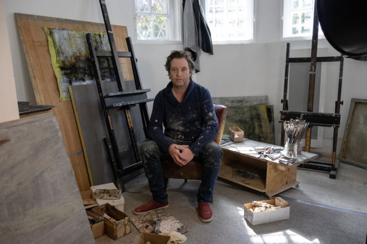 His technical execution is deliberately aligned with the subject matter. In his seminal Snake Handler series, Feyer utilised a monochromatic palette to echo the aesthetic of documentary photography. The use of encaustic introduced a palpable sense of angst, while the application of gold leaf referenced the religious iconography central to the community's faith. He explains that rendering these scenes in full colour would have felt "too graphic, even voyeuristic, stripping them of the mystery I wanted to preserve." In contrast, his New York series, which explores the urban decay of the 1980s, is characterised by a raw dynamism. Relying on the palette knife and layered washes, he captured the chaotic energy of a city in flux.