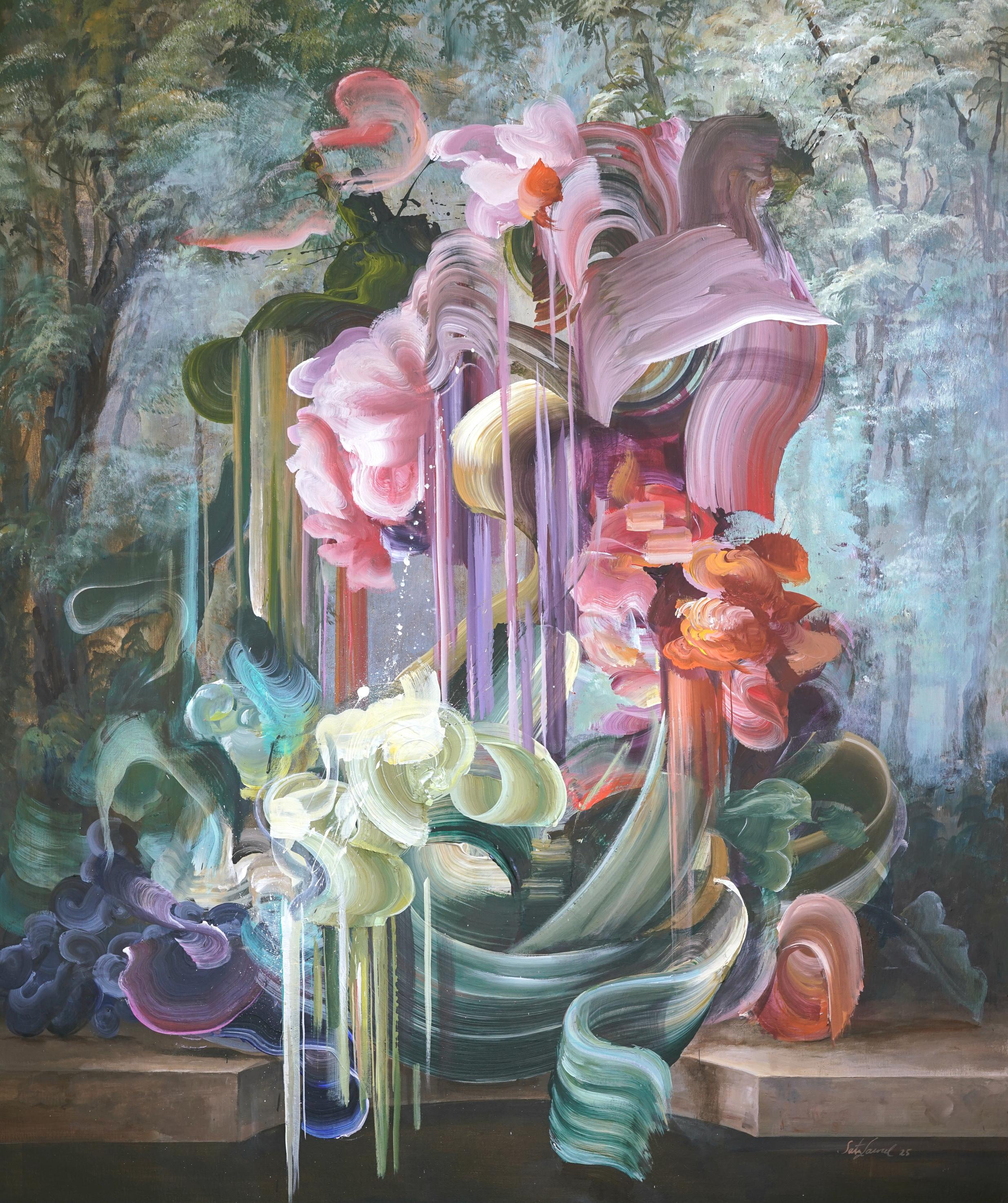 Laurel’s artistic philosophy is rooted in a constructive rather than critical methodology. Citing influences ranging from Albert Bierstadt’s sublime landscapes to the Rococo reinterpretations of Flora Yukhnovich, Laurel engages with the history of painting as a "stage." Here, the canvas functions as a performative space in which objects and gestures are arranged to interrogate the viewer’s relationship to observation, memory, and the "silent knowledge" conveyed through colour.